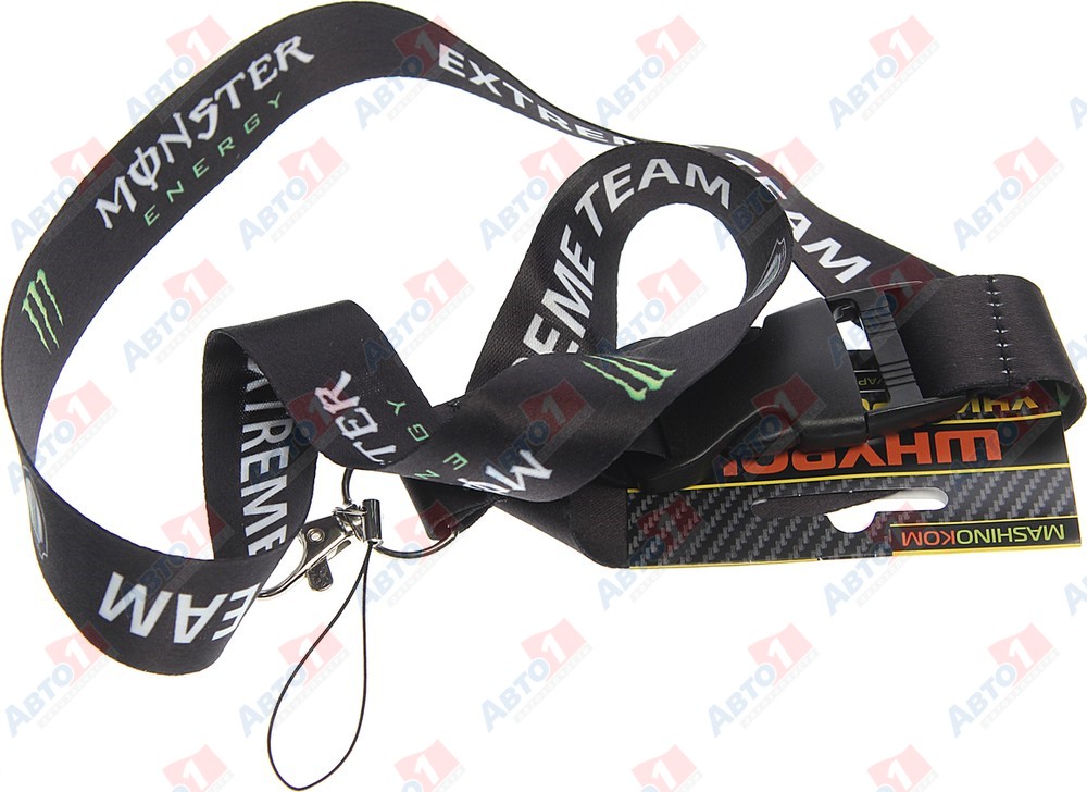 MASHINOKOM TTK 079 Шнурок на шею с карабином "Monster Team" тканевый, черный
