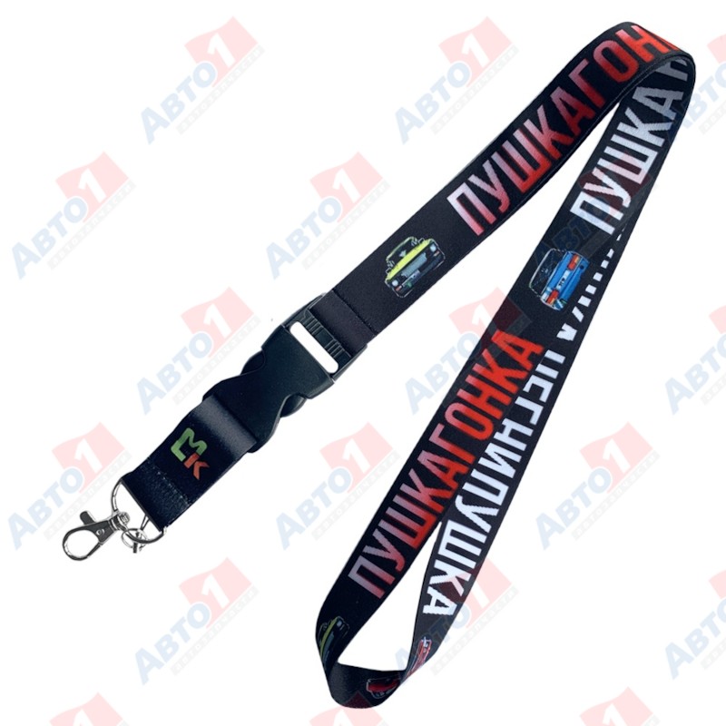 MASHINOKOM TTK 087 Шнурок на шею с карабином "Пушкагонка" тканевый, черный