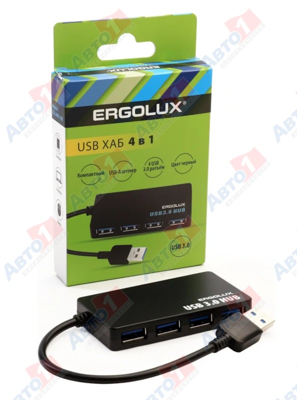 ERGOLUX 15109 ELX-SLP01-C02 (Разветвитель USB-4USB, 2А, Черный, Коробка)