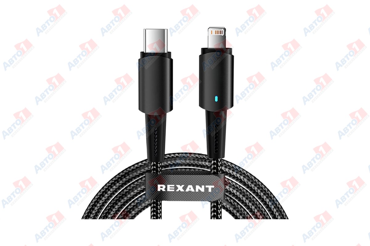 REXANT Кабель Type-C – Lightning для Apple, 3А, 1м, в черной нейлоновой оплетке, со световой индикацией