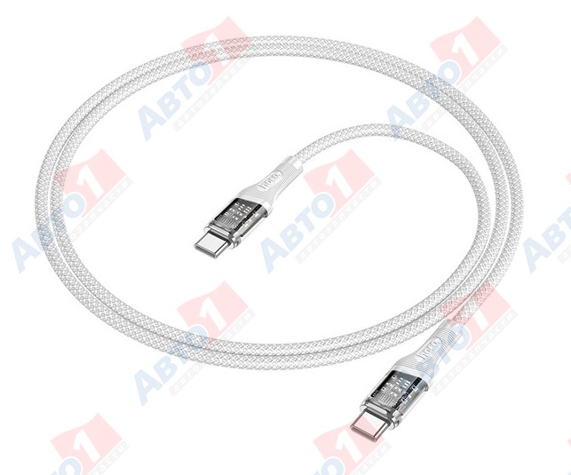 HOCO 6931474778253 Type-С кабель U111 Transparent Type-C - Type-С 1 метр, 60W, 3A, ПВХ, с подсветкой, серый (22/220)