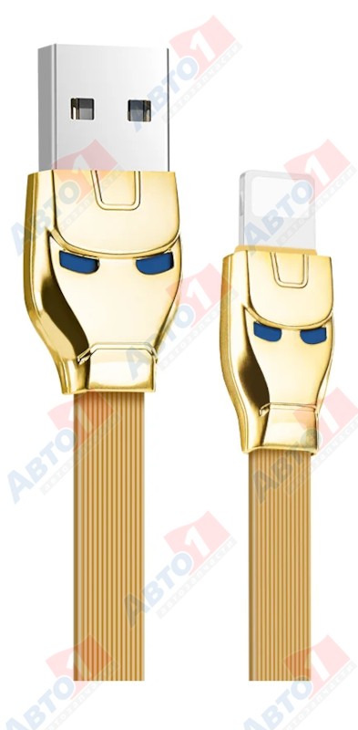 HOCO 6957531049401 USB-кабель U14 Steel man AM-8pin (Lightning) 1.2 метра, 2.4A, индикатор, ПВХ, золотой (50/300)