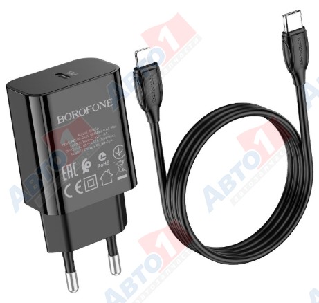 Borofone 6974443383928 Сетевое ЗУ BA65A, PD20W, 1хUSB-C, 3А + кабель (Type-C на 8pin (Lightning)), 1 м, черный (54/216)