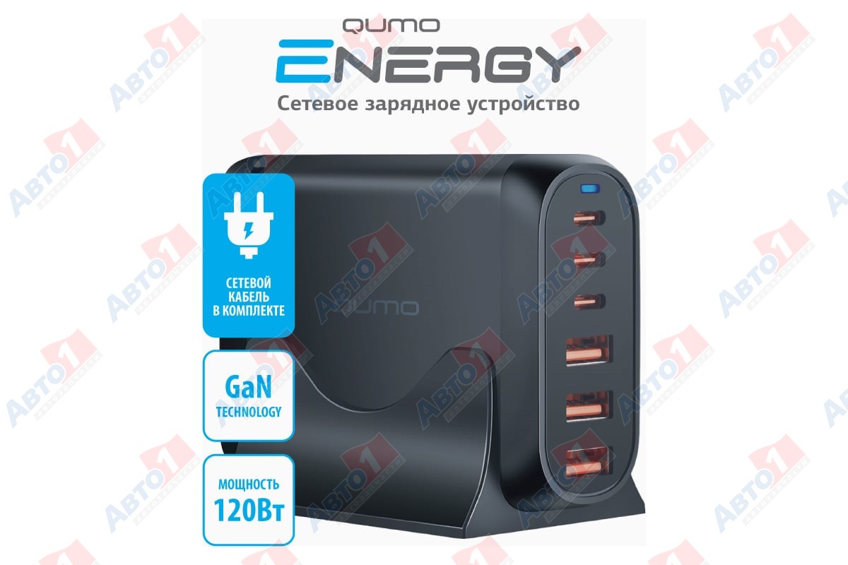 QUMO Q49544 Сетевое зарядное устройство Energy Charger GaN PD 120 Вт, 3 USB-A + 3 USB Type-C, (0120), черный