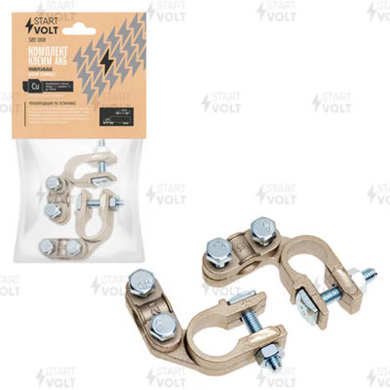 StartVOLT SBT 008 Клеммы АКБ в комплекте сплав цинка и меди, прижимная планка (левое (-), правое (