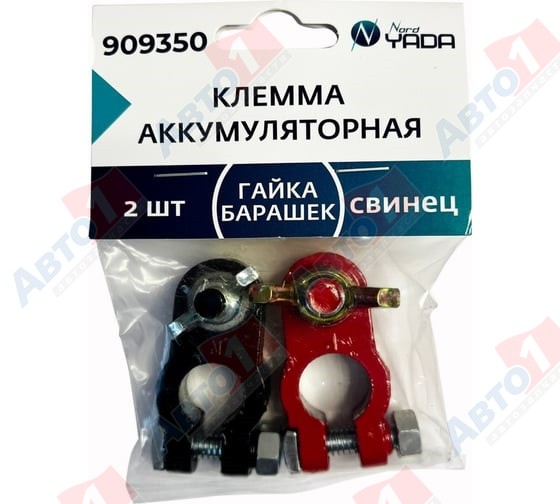 Nord Yada 909348 Клемма АКБ латунь 2шт прижимная планка до 50мм Л (-) П (+) к-т аккумуляторная клемма