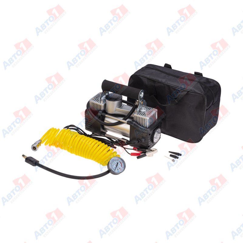 В комплекте поставляются переходники для накачивания мячей, матрасов, резиновых лодок. Особенности: двухпоршневой механизм; защита от перегрева; можно использовать для больших колес.