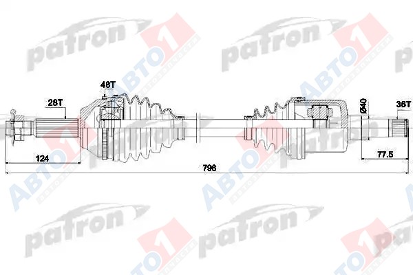 - PDS0302 Полуось левая 28x796x104,5x36 ABS: 48T FORD TRANSIT C БОРТОВОЙ ПЛАТФОРМОЙ VII, TRANSIT ФУРГОН VII 06