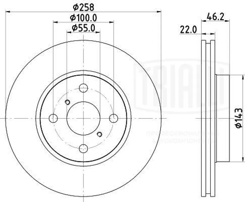 - Диск торм. для а/м Toyota Yaris (05-) перед. d=258 | перед |