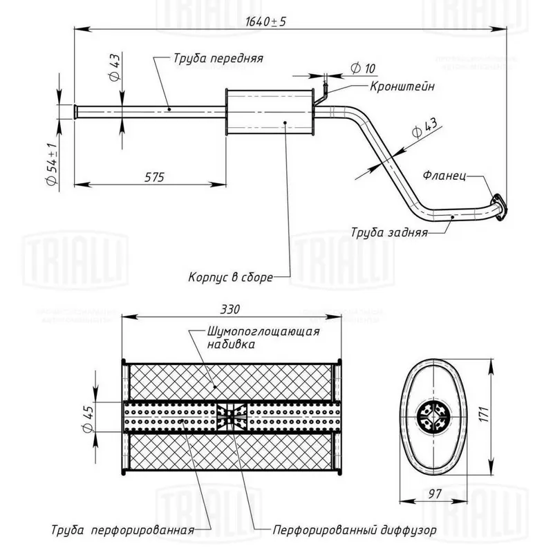 - EMM3502 Глушитель универс. (овальный) 97х171, L=330, d=50 (алюм. сталь) (EMM 3502)