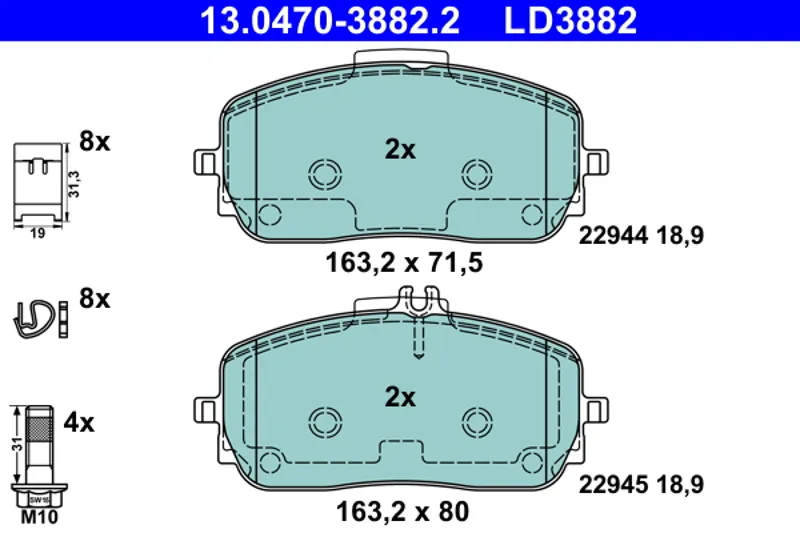 - 13.0470-3882.2 Комплект тормозных колодок, дисковый тормоз