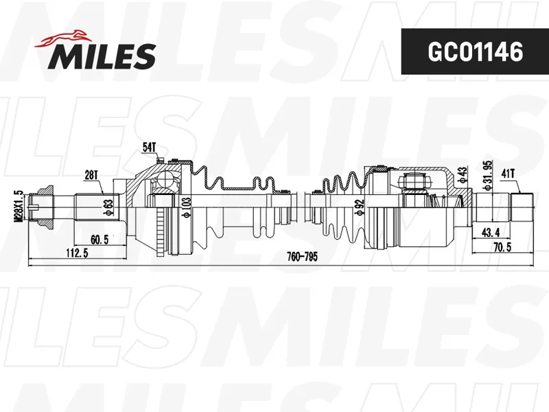 - 158 1039-SX_привод левый! 795mm ABS\ Fiat Ducato, Peugeot Boxer 2.0-2.5D MG5 94>