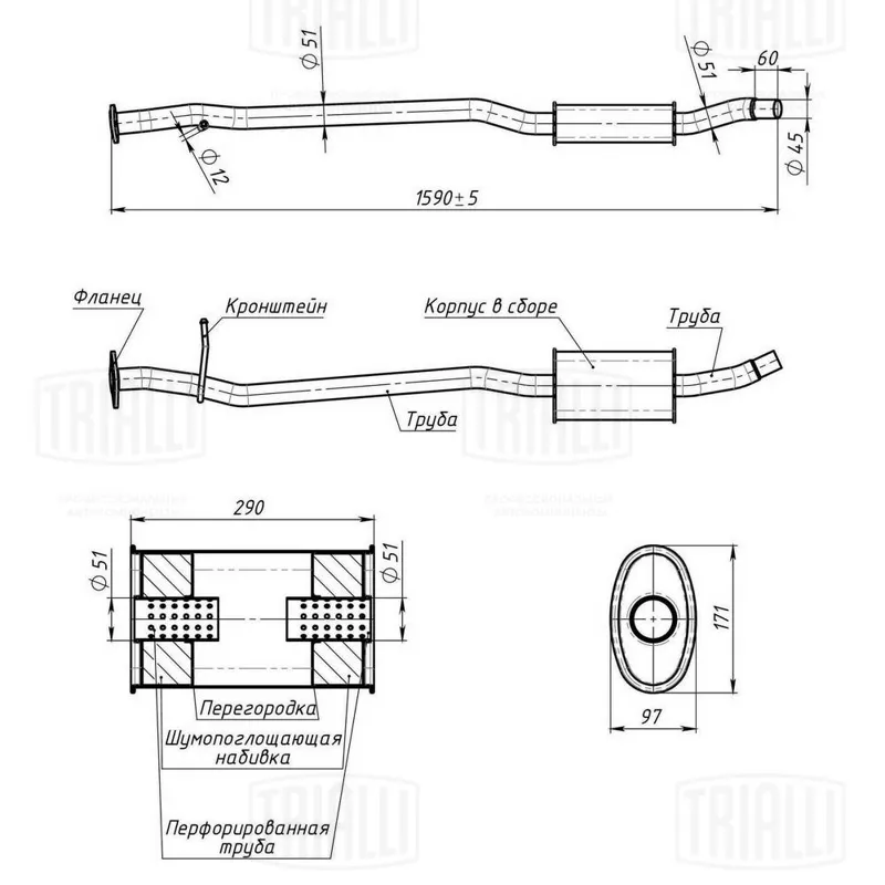 - Глушитель универс. (овальный) 97х171, L=330, d=50 (алюм. сталь) (EMM 3502)