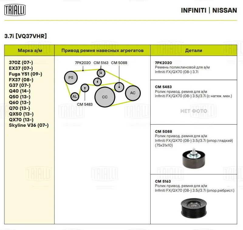 - CM5163 Ролик привод. ремня для а/м Infiniti FX 35 (08-) 3.5i/3.7i (только ролик)
