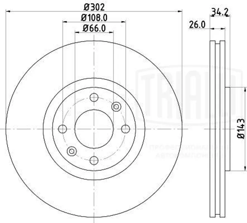 - ДИСК ТОРМ CIT C4 04-/DS4/DS5/PGT 208/308/3008/5008 07- ПЕР ВЕНТ 302X26