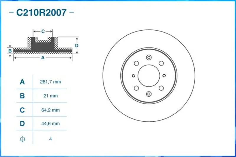 - C210R2007 Диск тормозной HONDA CIVIC IV/VII 87