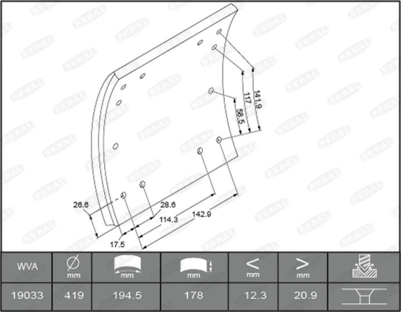 • KBL19030.0-1631 Барабанные тормозные колодки