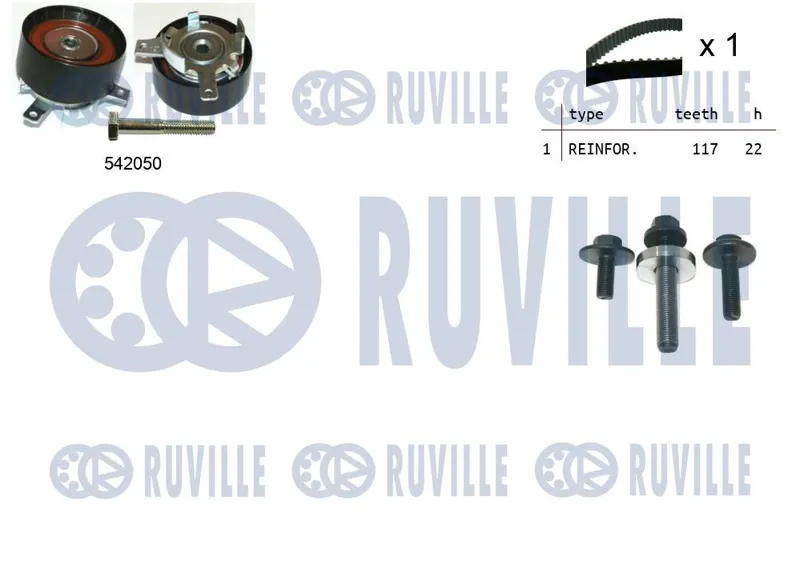 - Ремень ГРМ [117 зуб.,22mm] + Водяной насос + ролик + 2 болта