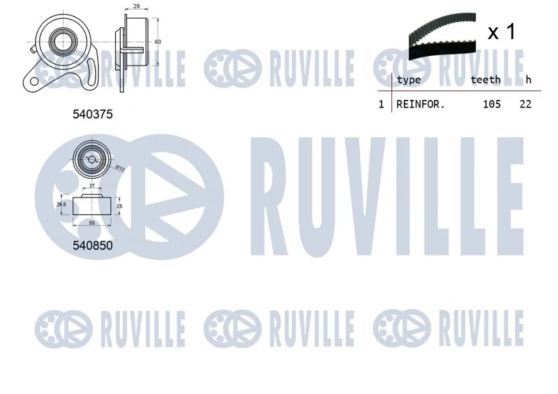 - Ремень ГРМ 105x22 + 2 ролика Hyundai Accent 1.5/1.6/Elantra/Getz 1.6 00>
