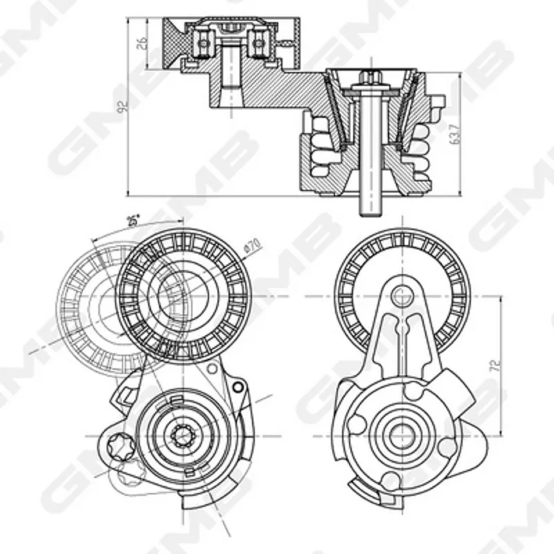 - 03-40812-SX_ролик натяжной с механизмом натяжения!\ BMW E60/61/63/70/81/85/87 2.5/3.0 05>