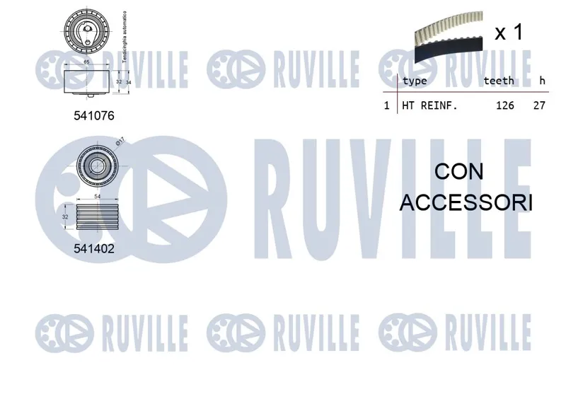- 550278 Комплект ГРМ RENAULT/OPEL LAGUNA/MEGANE/VIVARO 1.8/2.0 2001 => (ролик 2шт+ремень 126x27)