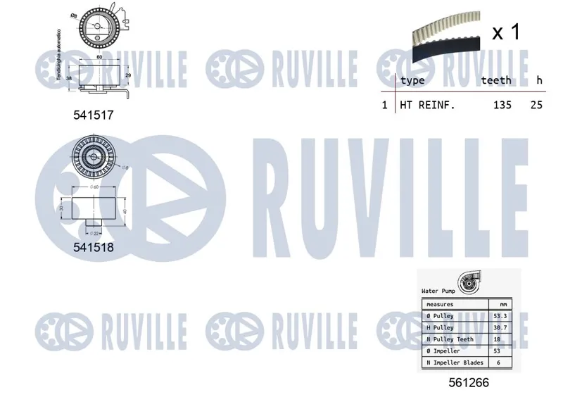 - Комплект ГРМ с помпой CITROEN C3/4/1007/206/307 1.4 2003=> (2 ролика+ремень 135з.)