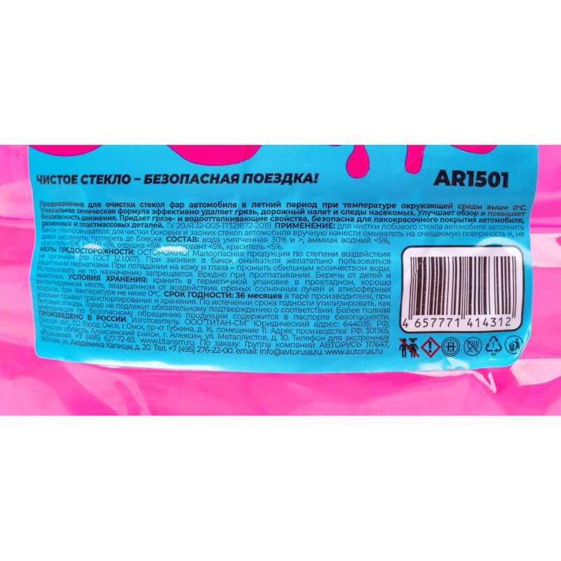 • AR1501 Жидкость стеклоомывателя летняя ПЭТ готовая бабл гам 5 л AR1501
