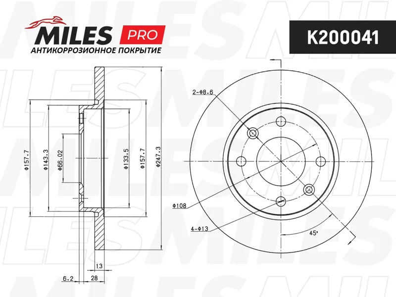 - Диск тормозной передний с покрытием CITROEN Xsara/PEUGEOT 206/306 /D=247mm