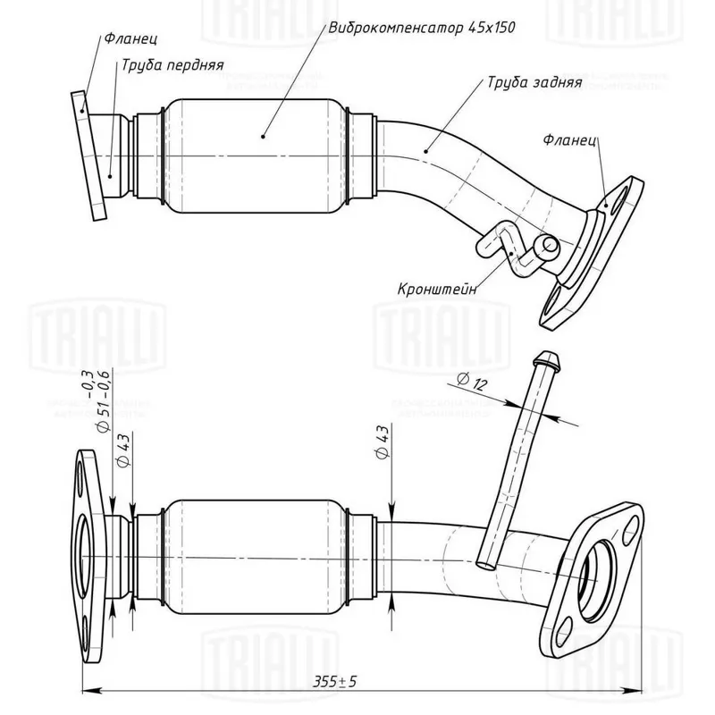 Труба глушителя промежуточная