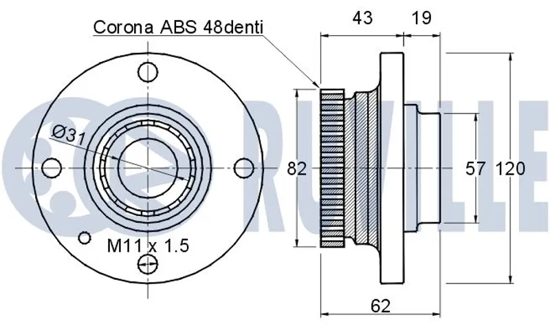 - 43-28132-SX =VKBA938=VKBA3665=67/12=R150.17=K-05/10 !к-кт подшипника ступ. пер.\ BMW E30 all <94 ABS