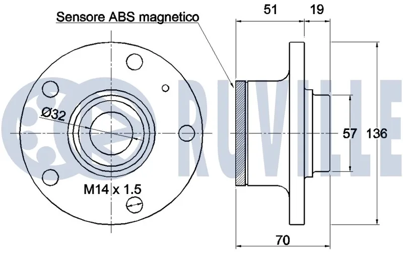 - 90123 1T0598611B VW Touran 03- R Подш+Ступ