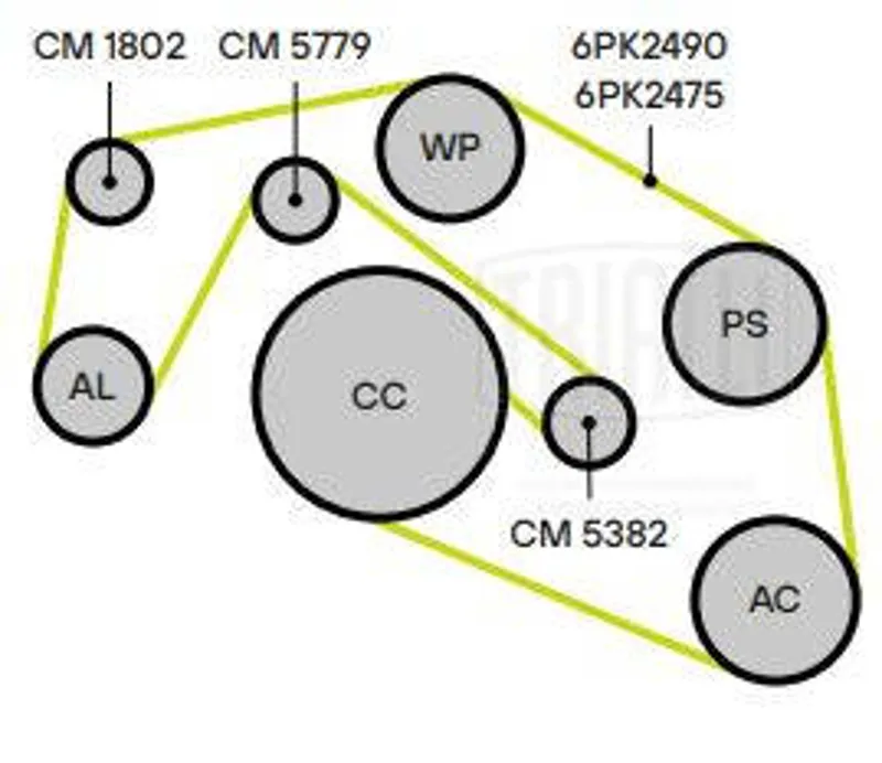 - Приводной ремень, холостой шкив A4(B7/8E/8H)/A4(B8/8K)/A5(8T/8F)/A6(C6/4F)/A6(C7/4G)/A8(D3/4E)/Q5(8R