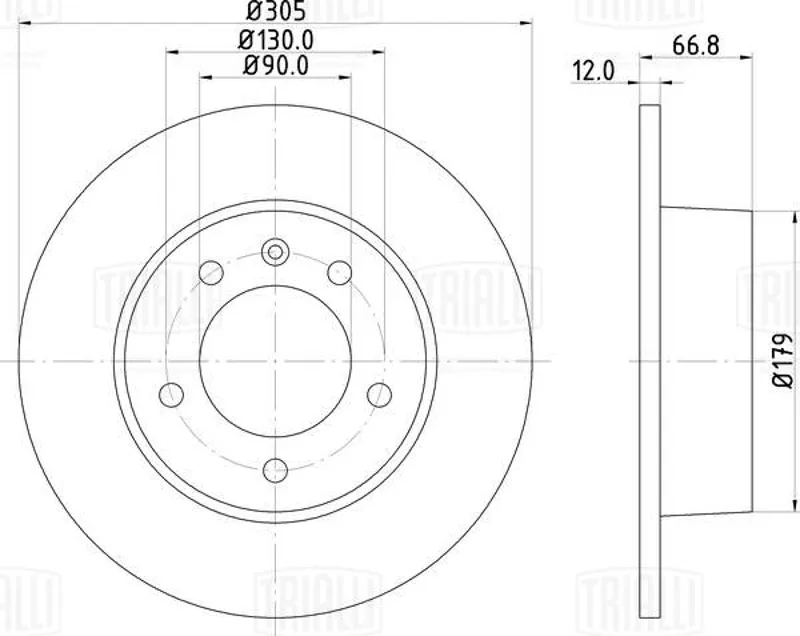 - Диск торм. для а/м Renault Master (98-)/Opel Movano (98-) перед. d=305 (не вент.) (DF 261012)