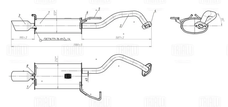 • Глушитель Hyundai Santa Fe (06-) 2.2i осн. прав. (алюм. сталь)