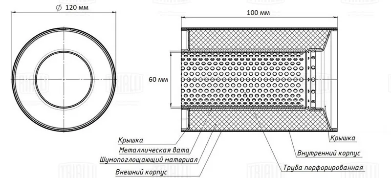 - ESM12010060k Пламегаситель коллекторный 120/100-60 (нерж. сталь) (ESM 12010060 k)