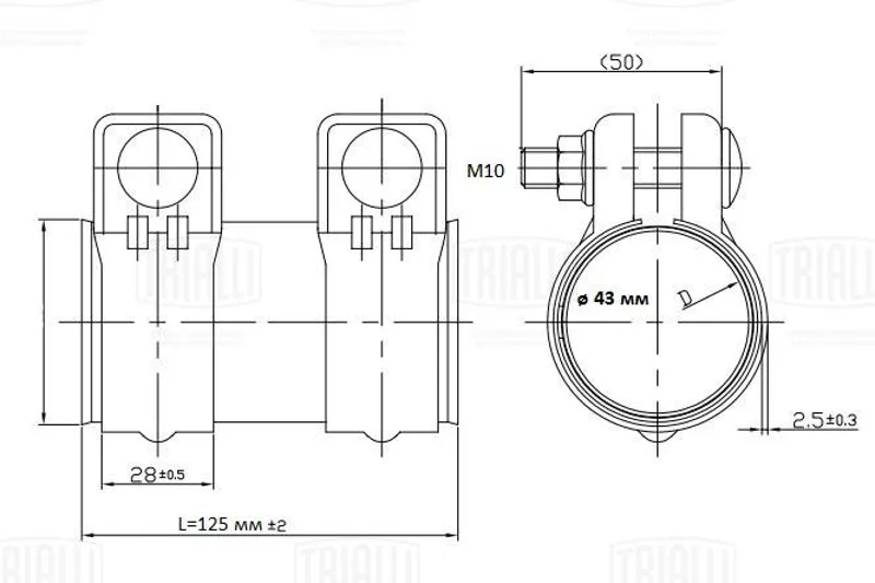 - TC 43 Z Хомут глушителя трубчатый с муфтой