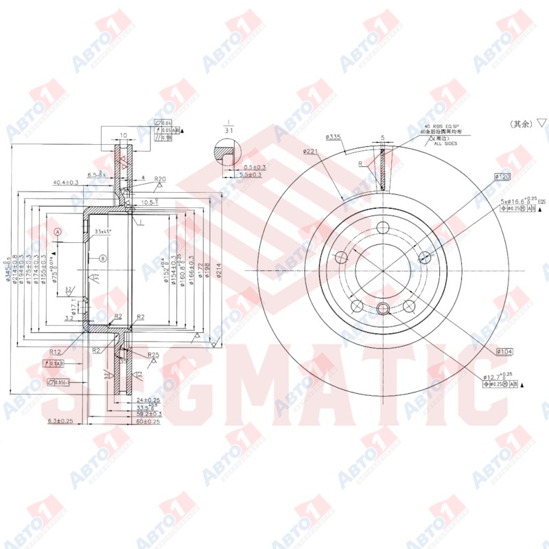 - 105728 Диск торм. задн. вент. (345 x 24mm.) 5 отв