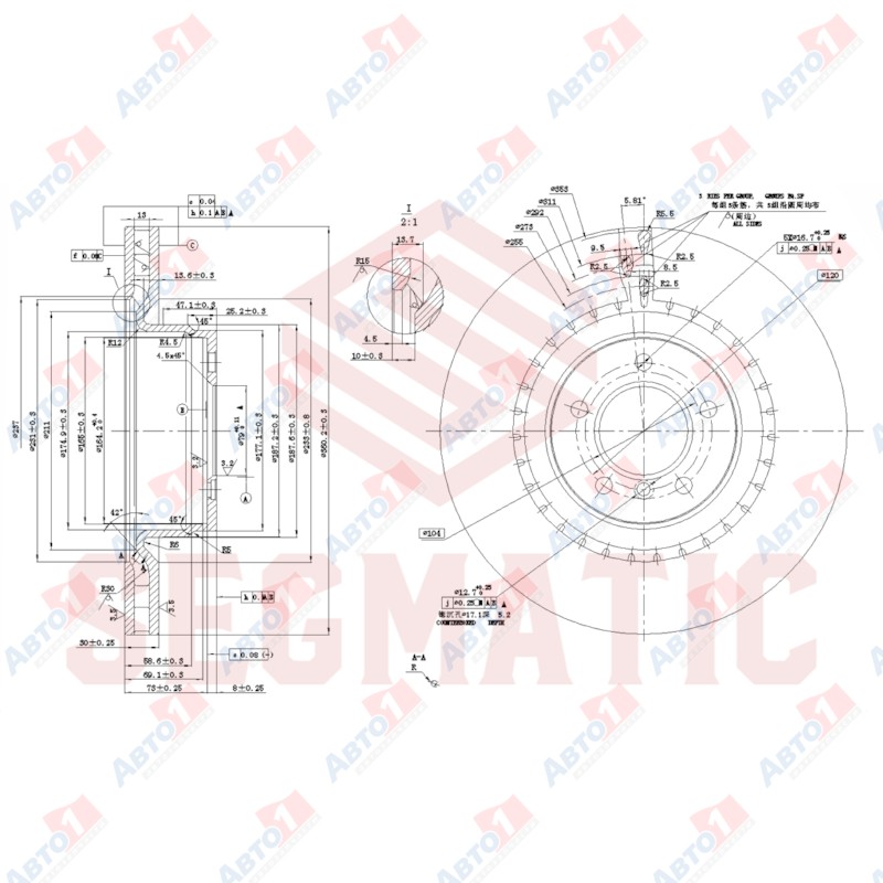 - 24.0130-0197.1 Диск тормозной передн, LAND ROVER: RANGE ROVER III 3.6 TD 8 4x4/4.2 4x4/5.0 V8 4x4 02-12