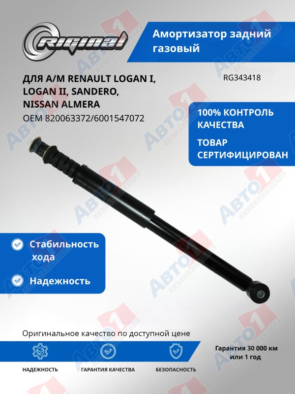 - 343 418 амортизатор задний газовый!\ Renault Logan 1.4/1.6 04>