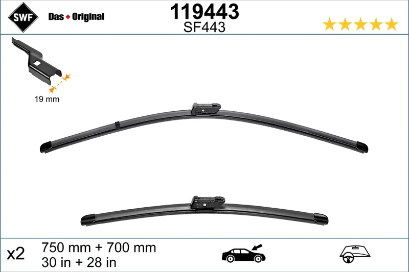- Щетки стеклоочистителя 75см + 70см к-кт плоская Push button 19mm RENAULT Espace V 15- / FORD Transit Custom 12