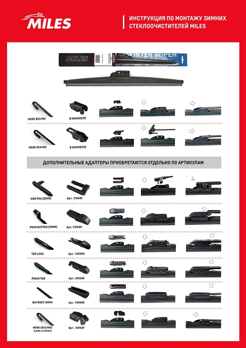- CWW18AC Щетка с/о зимняя 18/450мм + адаптеры HOOK 9x3/9x4 CWW18AC