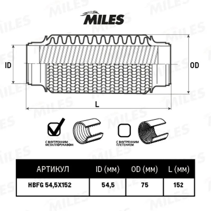 - HBFG54.5X152 Труба гофрированная с кольцевым плетением и металлорукавом 54.5X152 HBFG54.5X152