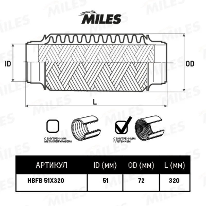 - Труба гофрированная с внутренним плетением 51X320 HBFB51X320