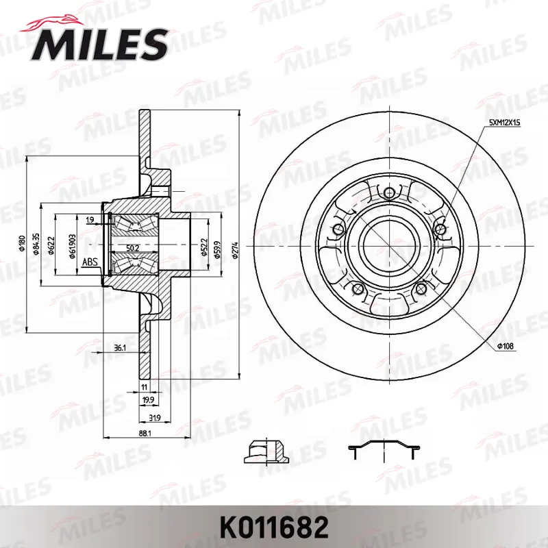 - Диск тормозной задний с подшипником, с кольцом ABS RENAULT KANGOO 08- K011682