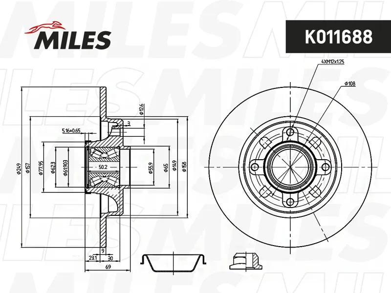 - K011688 Диск тормозной задний с подшипником CITROEN С3/C4/PEUGEOT 207/307 (TRW DF2059BS) K011688