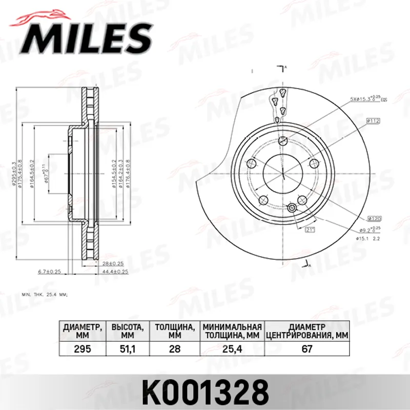 - K001328 Диск тормозной MERCEDES A(W176) 12-/B(W246) 11- передний D=295мм K001328