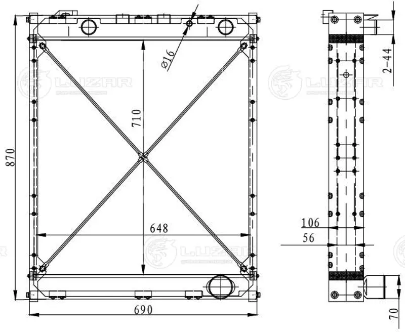 - LRC 1290 Радиатор охл. алюм. для а/м МАЗ ЯМЗ-238