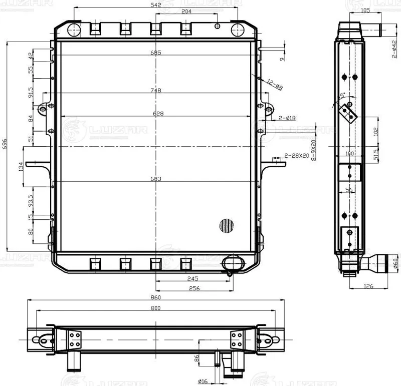 - LRC1225 РАДИАТОР ОХЛ. АЛЮМ. ДЛЯ А/М МАЗ ЯМЗ-236 (LRC 1225)