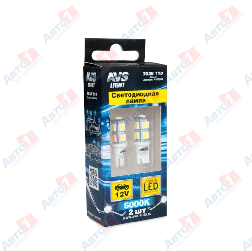 - A80606S Лампа накаливания безцокольная к-т2 шт габарит/подсветка номера/светодиодная W5W T028 T10 (W2,1x9