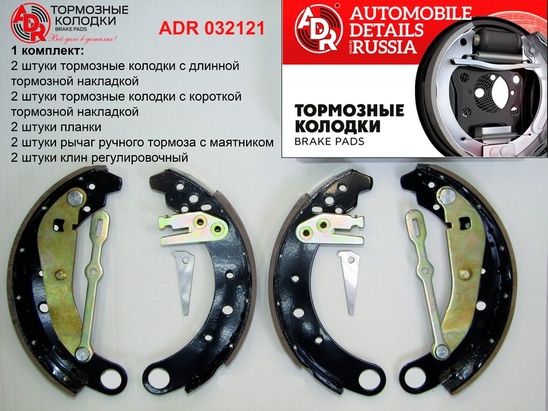 - ADR032121 Колодка тормозная задняя УАЗ-Патриот РК Dymos с 08.2013 г.в (к-т 4 шт) заклепанная (с рычаг+планка)